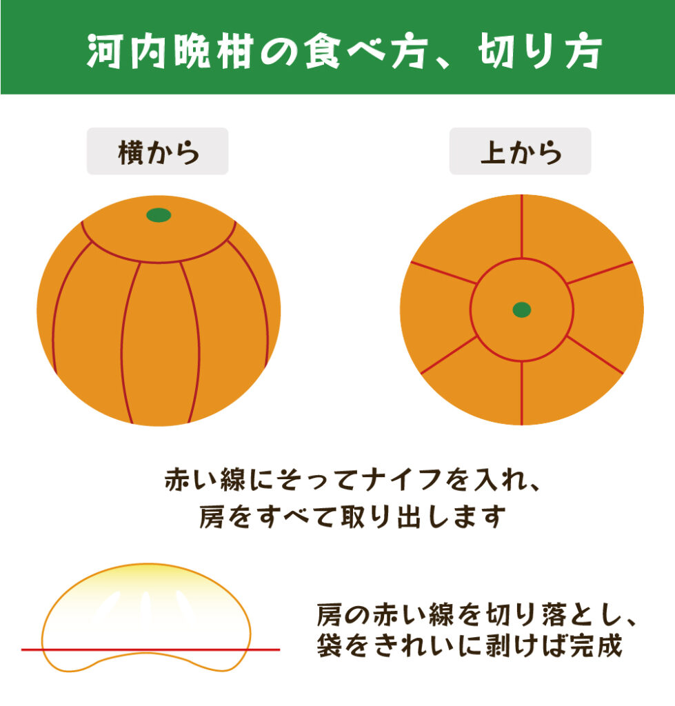 水分の多さ、さっぱりとした味わいからカロリー控えめ。100gあたりのカロリーは温州みかん49kcalに対し、河内晩柑は38kcalです(文科省食品成分表参照)。河内晩柑は春先の暖かいときの水分補給にぴったりです