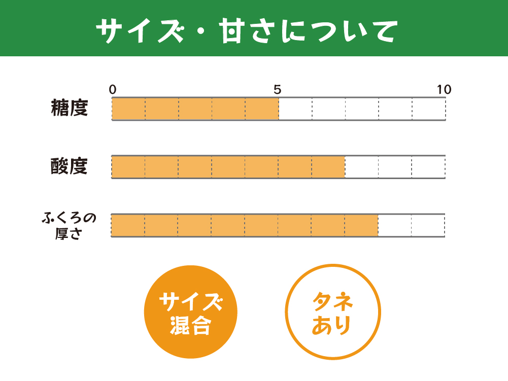 数に限りがあるため様々なサイズ混合で出荷します。多少風傷があるものも入りますが、品質に問題はございませんので家庭用としてご利用くださいませ。